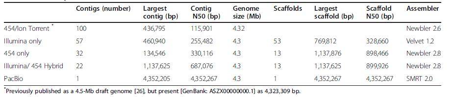 图1。DSM1061基因组组装的比较。